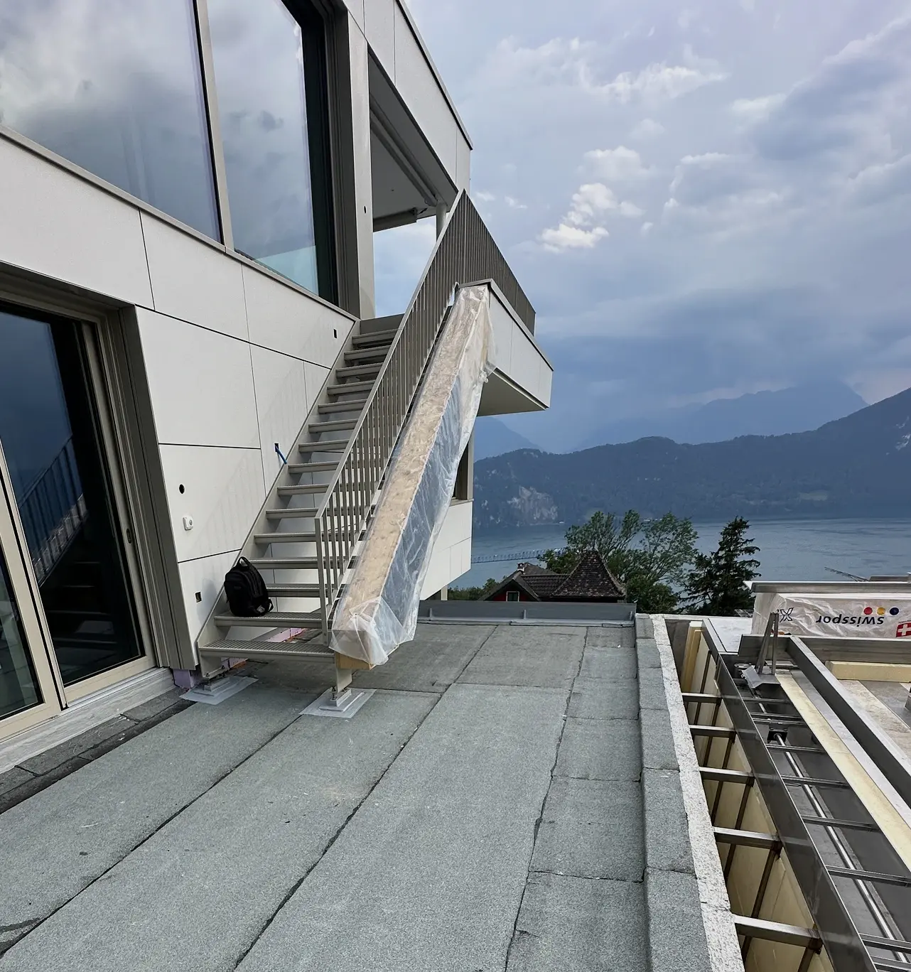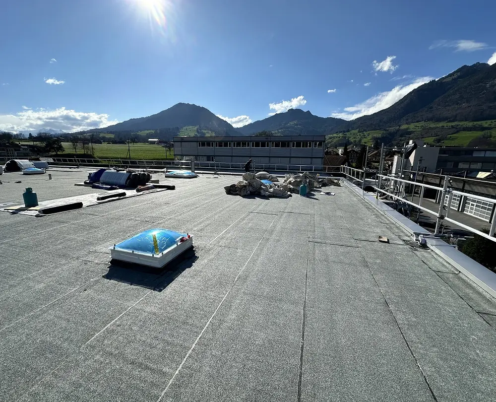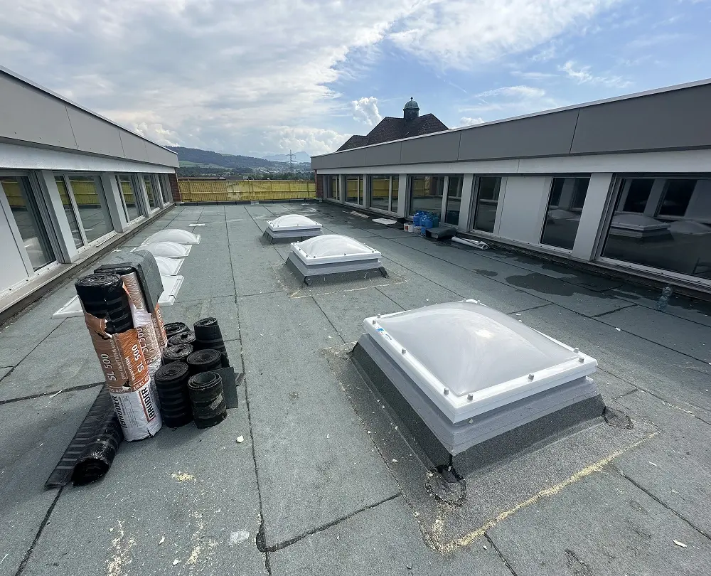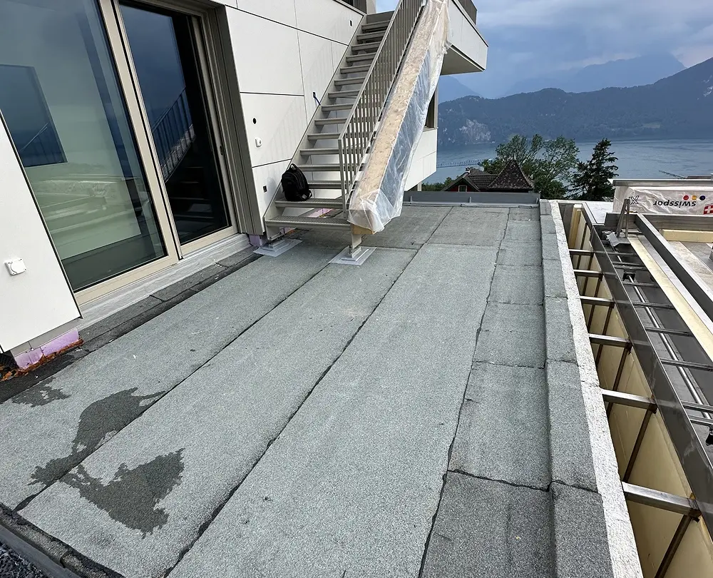 Per un tetto piano di 120 m² a Lucerna servono in media 3-4 giorni lavorativi. Lavorando per settori progressivi non è necessario abbandonare l’abitazione: una porzione di copertura rimane sempre protetta.